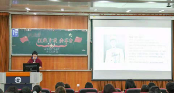 “红色基因永相传”团队以自己的实践过程为纲,为同学们讲述了自己的曾祖父梁魁庭先生在万山海战中立大功,以及梁魁庭先生的战友、儿子在部队的故事,为我们刻画了那个时代的军人群像。